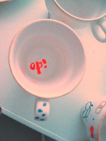 This cup was painted five years ago on my hen party. The Dutch text says OP! (Finished!). But when you read it upside down, it says I do. How appropriate ;o)