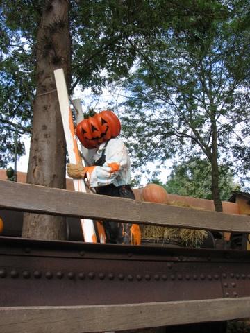 During the Halloween season in Disneyland Paris, large parts of the park are taken over by pumpkin men. They're mostly harmless, but they do try to paint the entire park orange. So be careful not to lean against any fences they might have just painted.