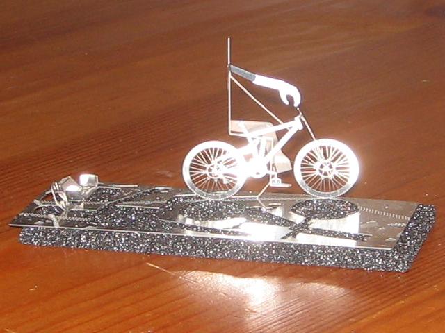 The little fella on his bicycle started out as a flat piece of metal. My girlfriend bought him at a design shop, and I bent him into shape as per the instructions.