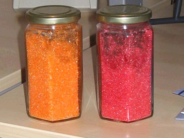 We bought these jars of colorful sugar at the Albert Cuyp market, Amsterdam's biggest open market. Left: mango flavored sugar. Right: strawberry flavored sugar.