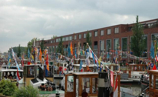 Every two year the small town Vianen is taken over by hundreds of old tug-boats. Some of them are really old, but they still run. It's a colourful scene with all those wooden boats with little coloured flags.