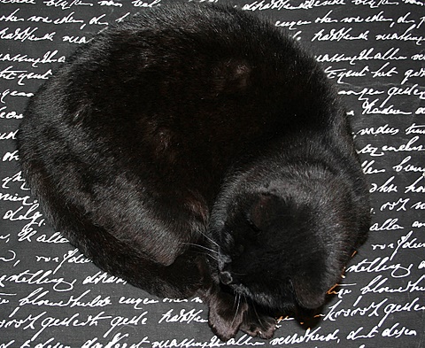 This cat is style sensitive. Since we got a black velvet couch, a black hocker and a black and white pouf, she always can be found in the living room... or not when you overlook her - black on black.