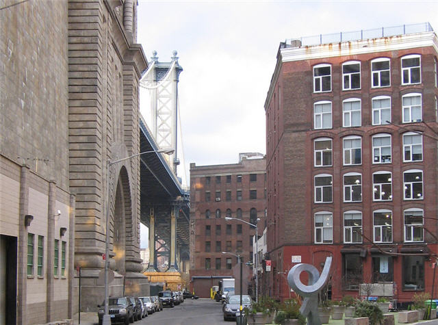 This is a neighborhood in Brooklyn, New York City, called DUMBO. That's not the lovable Disney elephant, but an acronym for 'Down Under Manhattan Bridge Overpass'.
