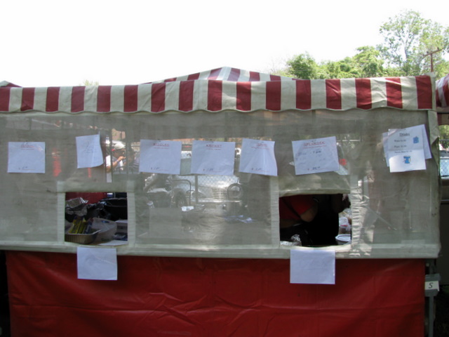 To keep all the nasty bugs away from their delicious food, this food stand is equipped with mosquito nets. Or is it more to protect the ingredients against the sun?