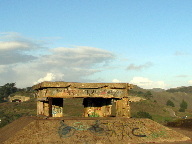 This is a lookout hut or Battery Command Station of Battery Mendell, Fort Barry. It's one of the old defensive works to protect the San Francisco Bay against enemies coming from the ocean. It was built in 1901 and dismantled in 1943.