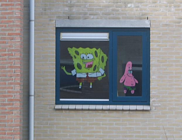 We have a new neighbor and she is very creative. She loves to decorate the window of the children’s bedroom. When we look outside the window of our study, we see the most wonderful paintings. Till now we have seen ‘Sinterklaas & Zwarte Piet’ and a Christmas painting. Last week she painted this piece of art: Sponge Bob Square Pants. It’s not only nice for the children. We also enjoy it very much. I am curious what will be next…