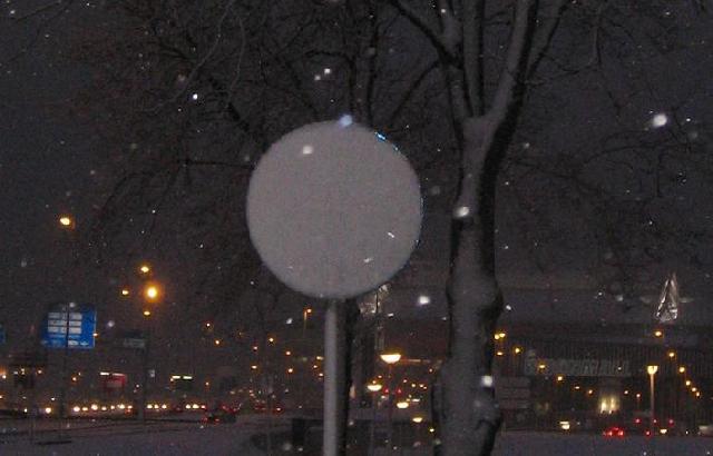 A recent blizzard flung a thick layer of snow against this traffic sign, so that it is completely unclear what it is prohibiting (if anything).