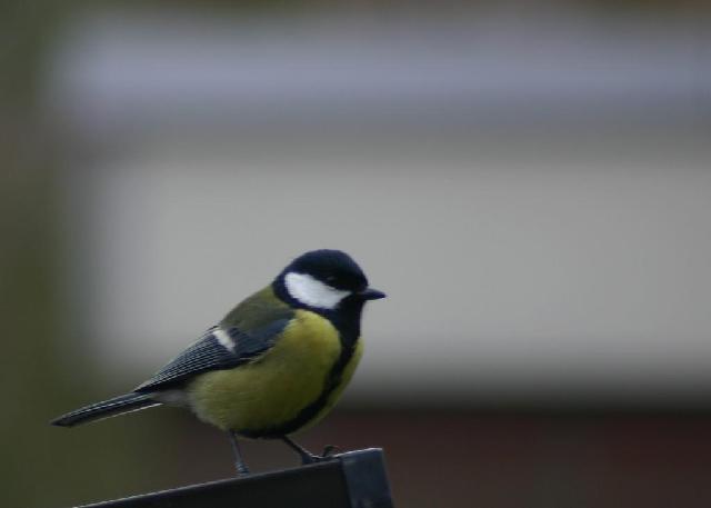 This great Tit or 'koolmees' in Dutch, comes by almost every day around noon to lunch on some peanuts that are hanging in my garden. Lately he even sometimes brings a date.