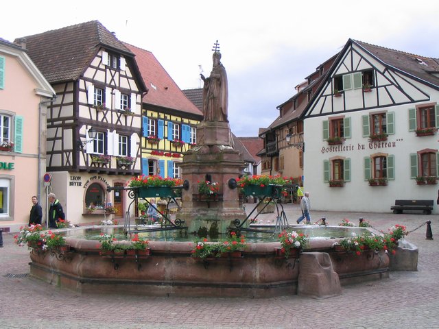 Do you think this is a Hollywood scene? Then you’re wrong. This is the ‘main’ square of an picturesque village in the Alsace, called Eguisheim. This village is part of the Alsatian Wine Road.