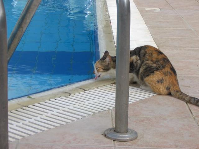 This little cat on Crete likes to drink from the swimming pool. This wasn't the only animal that liked our pool...