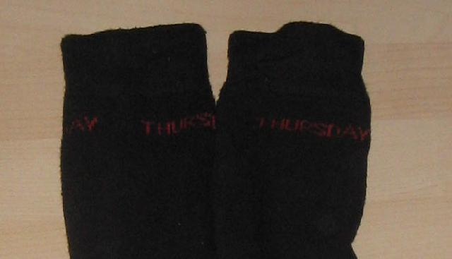 It's a bit hard to spot, but these socks actually say THURSDAY. Obviously, I have six other pairs of socks for the other days.