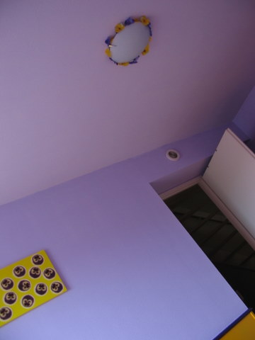 Two weeks ago I mentioned my pansies bedroom project. We already got our pansy curtains (sorry for the Dutch text, translation on request). Now here's a little update: I finally executed my 2 year old pansy plan. I got a canvas, painted it yellow and glued 24 pansy coasters on the canvas. And then I found all kinds of pansy stuff in the shop and I got totally carried away. So now our ceiling lamp in the bedroom is decorated with a string of pansies, pansies on the bedside tables and hanging in a corner. And the project continues...
