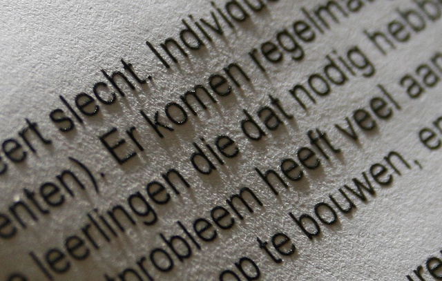 When I picked up this print from the laser printer, the letters seemed to be floating above the paper. Which allowed then to cast shadows in the bright light. It almost seemed like magic. Unfortunately the ink was absorbed by the paper a few moments later.