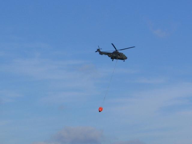 I live near a river and every once in a while our Dutch army practices here with helicopters. This one was practicing how to extinguish fire. It's quite spectacular to see the amount of water the helicopter collects in and pours out of the big red bowl.