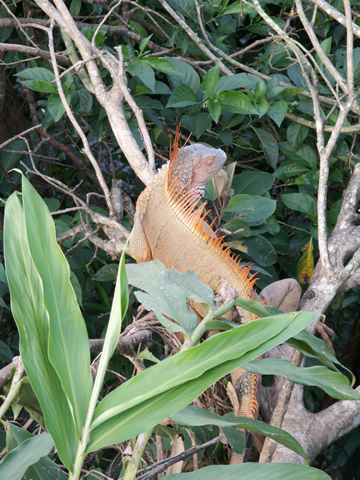 Green iguanas are found all over Costa Rica. They can be different shades of green and they tend to turn bright orange in the breeding season.