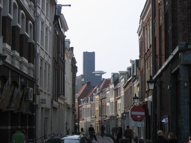 I guess the pilot of this UFO miscalcuted his landing a wee bit. The official UFO landing strip is situated in Houten, about 8 kilometres south from the Ink Pot building where it's dangling now.