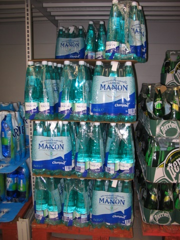 Never knew I had my own sparkling mineral water. We saw this pallet with bottled water in a supermarche in France.