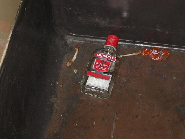 For a change, I wanted to show a picture that's gritty and dark. In this case, an empty hip flask of vodka and some chicken bones, left on the floor of an Amsterdam metro car.