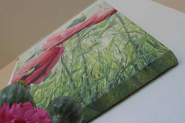 My parents surprised us with a beautiful poppy painting of Anneke Bagerman. Every time we walk in the living room and see the painting it brings a big smile on our faces. And we don't even need the poppy milk inside for that (the milk is raw opium, used for the production of heroin).