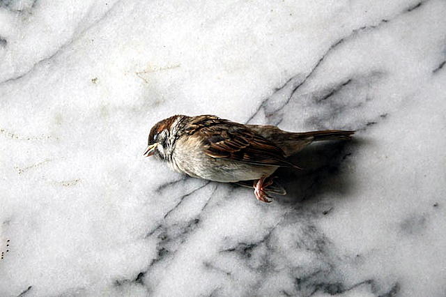 When I found this sparrow he was still warm. He probably mistook the window for an open entrance to the birdseed I feed my chickens.