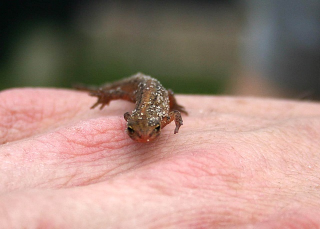 Knowing that this salamander is no more than three centimeters long, you will forgive me that his face is out of focus. I forgot to check the picture before I set him loose, so there was no second chance.