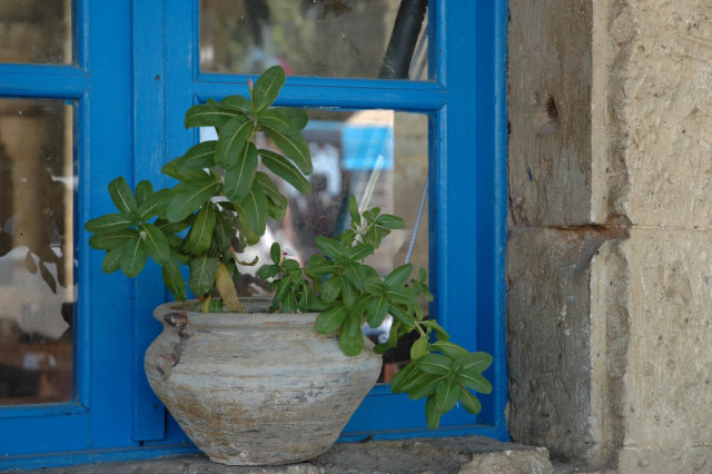 In Crete, and all over the rest of Greece, you see these beautiful blue coloured windows frames. We really love this colour and tried to paint our own windows frames Greek Blue as well. It worked out that this colour fits perfectly in Greece, but not in the Netherlands. It is way too bright and joyful. :-) But priggish as we are, we decided to paint the doors of our house Greek Blue instead of the window frames. And till now we didn't regret it once! It brightens up your day! But, as you can see on this picture, the colour is best in its own natural environment. ;-)