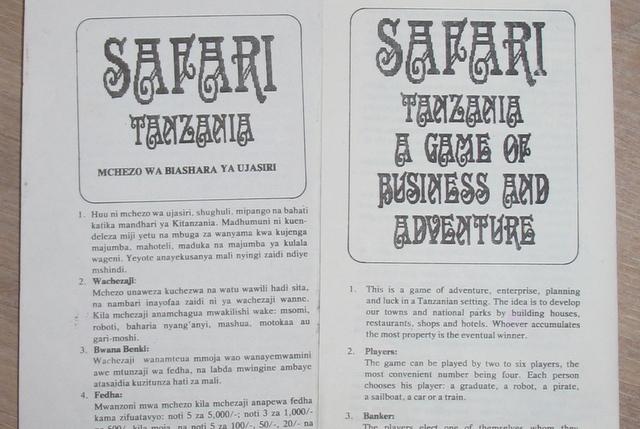 Last week I told you about the Tanzanian Monopoly game we got. The rules are both in English and Swahili.