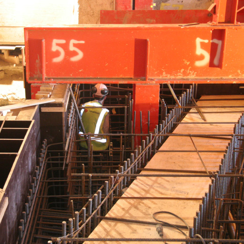 The picture was taken underneath Amsterdam Central Station. Some of the wooden pole foundation has been removed to make room for the new underground station.