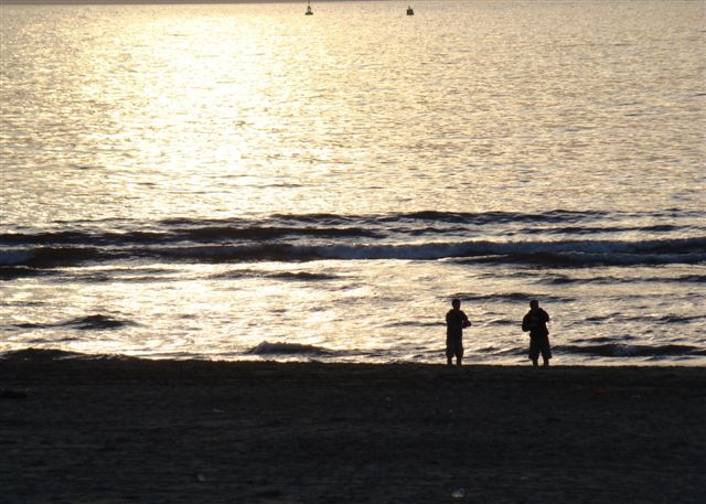 While looking at the small figures on the beach, you immediately draw an imaginary line to the buoys in the distant sea. But for me, the figures and the back light were already interesting enough to take a picture.