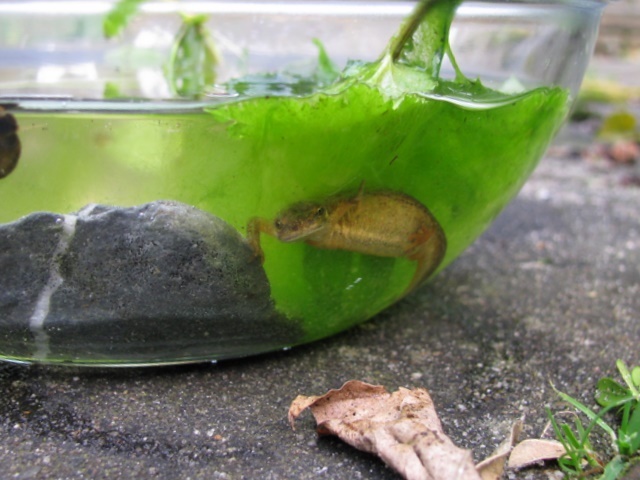 Luckily I found the stressed mum too, it was hard to get her in the bowl. By the look of her eyes I can tell she wasn't too thrilled about my photo shoot. I released them again in the pond. Let's hope they're not traumatized.