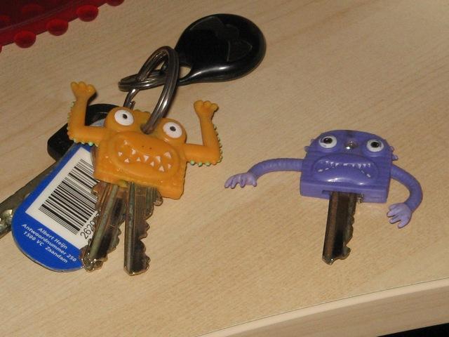 These monsters protect my keys, and help me remember which key fits which lock. They're call Freakeys.