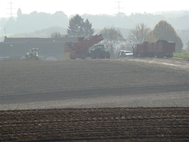 A typical autumn sight in the south of Limburg. Farmers harvesting the beets and corn from the slanted fields, partly hidden from sight by shreds of fog.