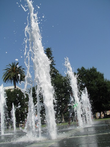 Playing in the fountains