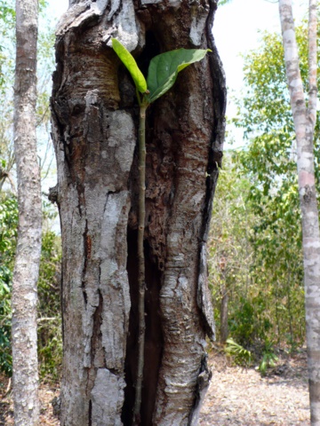 I was amazed when I saw this brave little stem sprouting from within another tree.