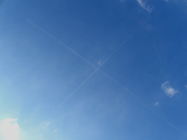 When I was looking up to the sky, a very bleu sky, I saw this sign. They had crossed over me. Till now I don't feel obsolete but hey, maybe I will be later on.