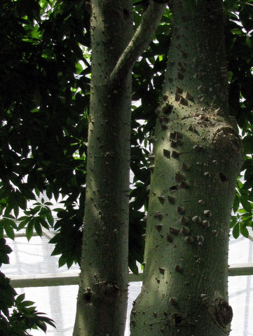 When you see the big thorns on this tree you wouldn't guess that it's a 'Silk Floss' tree. There's nothing soft and silky about its trunk.