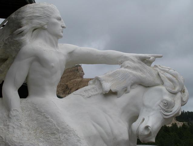 The Crazy Horse Memorial is a monument in progress. Sculptor Korczak Ziolkowski started the mountain carving in 1948. He was asked by Lakota Chief Henry Standing Bear to sculpt this monument to 'show the white man the red man has great heroes too'.