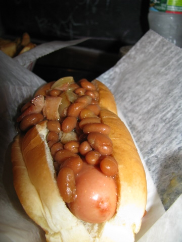 The Boston Terrier is not only a breed of dog, but also the name of a hot dog with Boston Baked Beans (beans with bacon cooked in molasses or maple syrup). You can get it at Top Dog of Rockport, Massachusetts.