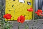 Poppies and a yellow door